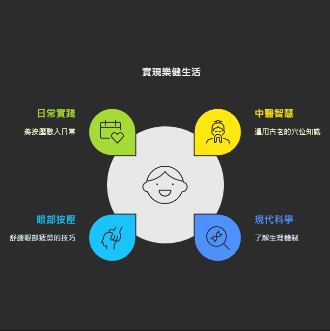 透過今天的分享,我們一同探索了眼周輕柔按壓的奧秘,從中醫的穴位智慧到現代科學的生理機制,無不印證了這項古老技法對「樂健生活」的積極貢獻。它不僅是舒緩眼部疲勞的良方,更是我們主動關愛自己、提升生活品質的途徑。將這些簡單的按壓手法融入日常,無論是工作間隙、睡前片刻,都能為雙眼帶來舒緩,為心靈注入平和。願每一位朋友都能從此刻起,用溫柔的雙手呵護我們的靈魂之窗,讓明亮的雙眸映照出更加健康、喜悅的人生風景,真正實現身心和諧的「樂健生活」。