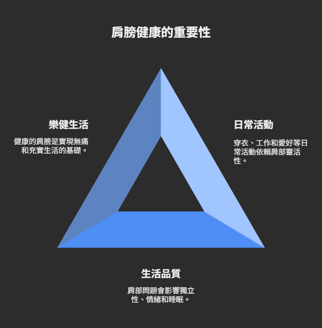 我們的雙肩,經常是日常生活中默默承受最多的「無名英雄」。從早上起床穿衣、梳洗,到工作時長時間使用電腦、處理文件,再到運動時追求更佳表現,甚至是投入個人愛好時的專注揮灑,無一不依賴著肩部的靈活與穩定。然而,當肩部開始出現緊繃、痠痛甚至活動受限時,我們的生活品質便會大受影響。那種力不從心的挫敗感,不僅可能削弱我們獨立生活的能力,有時更會悄悄影響情緒的平靜和夜晚的睡眠。因此,擁有一雙健康的肩膀,讓我們能無拘無束地擁抱生活,遠離疼痛的困擾,這無疑是實現「樂健生活」中不可或缺的重要基石。