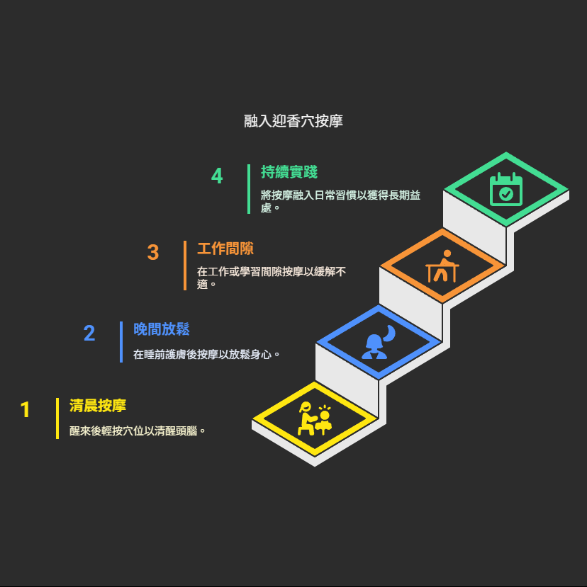 將迎香穴按摩融入您的日常生活其實非常簡單。您可以在清晨醒來後,輕按幾分鐘,幫助頭腦清醒,開啟呼吸順暢的一天;也可以在晚間護膚程序後,作為放鬆身心、預備安眠的一個步驟。工作學習間隙,感到鼻部不適或頭腦昏沉時,隨手按摩迎香穴,也能即時帶來舒緩。關鍵在於持之以恆,讓這個簡單的動作成為一種有益健康的習慣。正如中醫「治未病」的理念,規律的穴位保健不僅能緩解已有的症狀,更能預防問題的發生,提升身體的自癒能力。