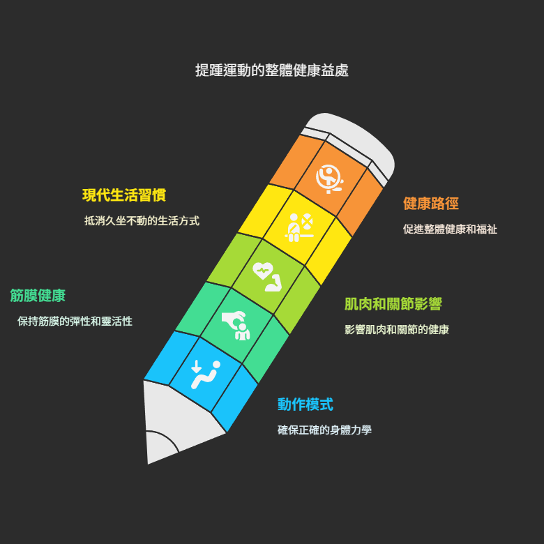 許多疼痛根源於身體無法維持正確的動作模式。當筋膜因不良姿勢或缺乏活動而緊繃,便會影響肌肉和關節,最終引發疼痛。因此,即使是提踵這樣簡單的運動,也應注重正確性與身體感受。現代生活的便利常使我們趨向靜態,有意識地引入如提踵運動這樣的小習慣,正是打破慣性,開闢健康路徑的積極作為。
