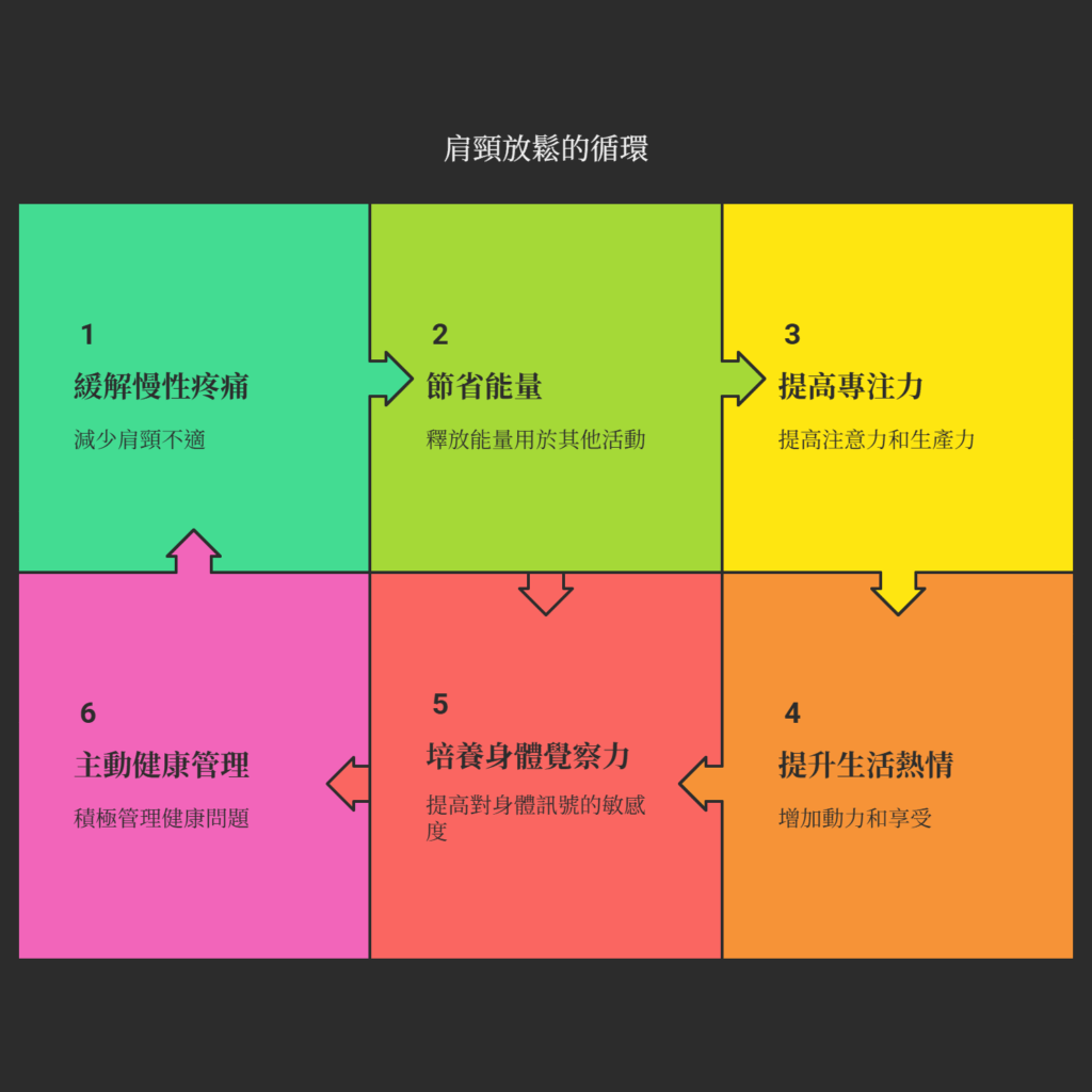 最終,當肩頸的慢性疼痛得到緩解,身體不再需要耗費大量精力去「對抗」或「壓抑」不適感,這份「節省」下來的能量,便能轉化為更佳的專注力與更高的生活熱情。規律地進行伸展、留意姿勢、適時放鬆,這不僅是自我照護的行為,更是在培養一種重要的「身體覺察力」。這種對身體細微變化的敏感度,能讓我們更早地發現問題,及時調整,從而將健康的主動權牢牢掌握在自己手中。
