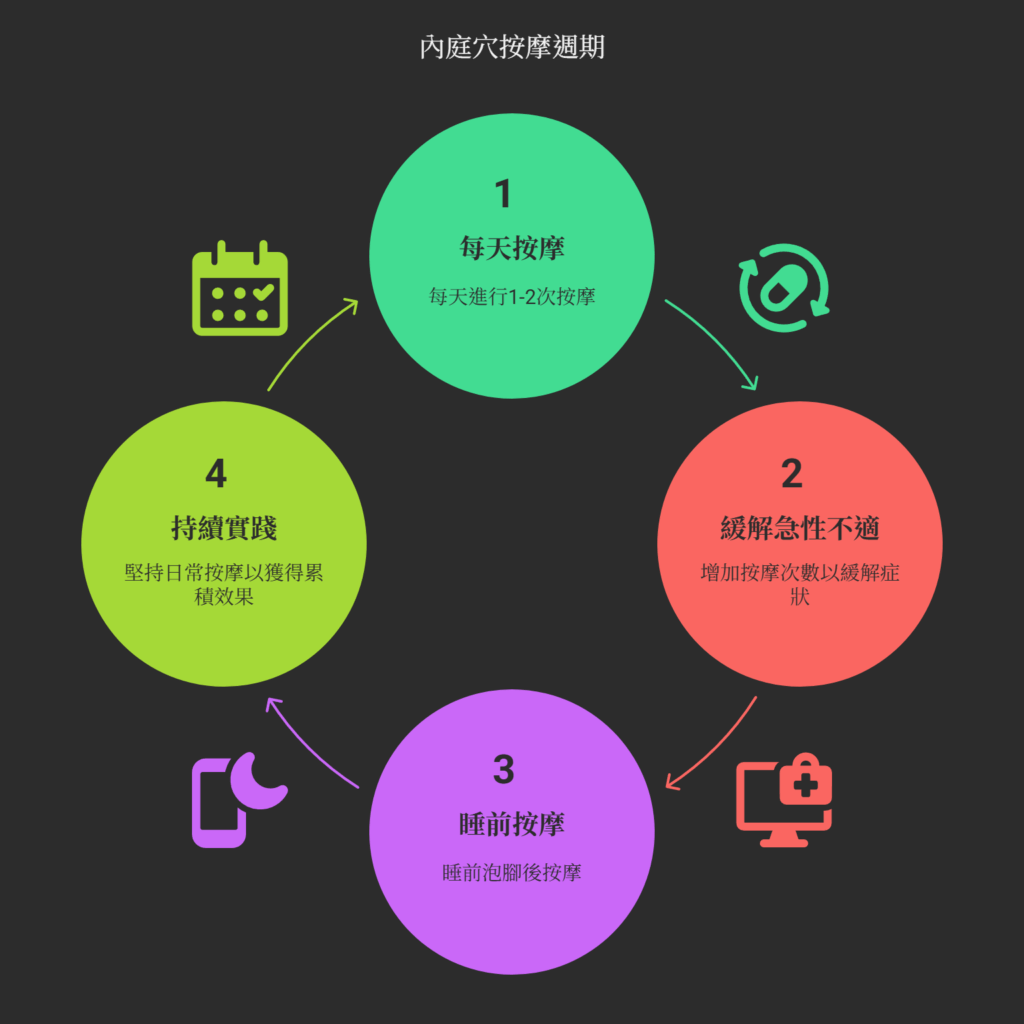 在時間與頻率上,我建議初學者可以每天進行1至2次,每次按摩左右腳的內庭穴各1到3分鐘。對於急性不適,例如突發的牙痛或胃部灼熱,您可以增加按摩次數,每次持續按壓直到症狀有所緩解為止。而對於日常保健或調理慢性失眠,我特別建議在每晚睡前泡腳後進行按摩,此時身體放鬆、循環良好,穴位刺激的效果會加倍。將這個簡單的動作持之以恆地融入您的生活,其累積的效果遠勝於偶爾一次的強力按壓,這正是養生貴在堅持的道理。