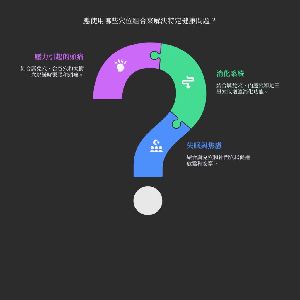 在我的治療實踐中,我很少單獨使用一個穴位。將不同的穴位組合,就像是為您的身體調配一劑精準的複方,能產生更強大的協同效應。若您的目標是改善失眠與焦慮,可以在睡前按摩厲兌穴後,加按手腕內側安定心神的「神門穴」。若想全面調理消化系統,厲兌穴可以與位於腳背、同樣能清胃火的「內庭穴」,以及膝下補氣健脾的「足三里」一同按摩。對於壓力引起的頭痛,厲兌穴與手背上的「合谷穴」、腳背上的「太衝穴」搭配,是釋放全身緊繃的經典組合。