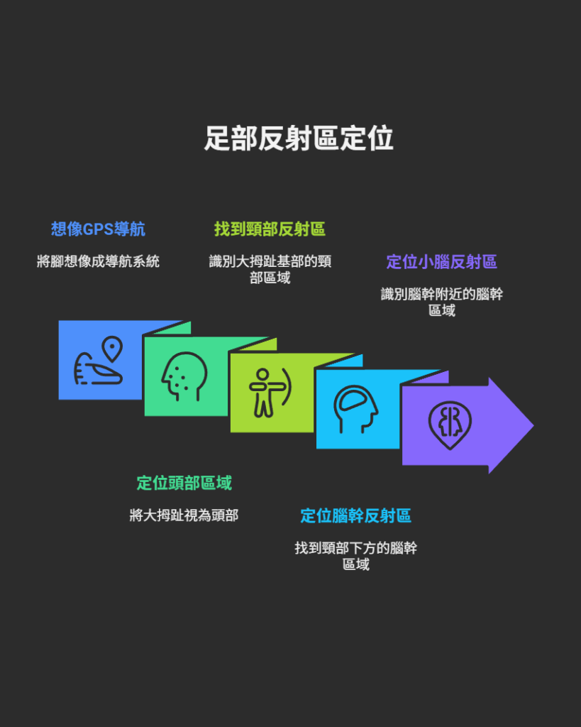 要啟動這個強大的機制,第一步是精準定位。請將您的腳想像成一個GPS導航系統,而我們的目的地,就是位於頭部(大拇趾)與脊椎(足內弓)交界處的關鍵區域。首先,將您的大拇趾視為整個頭部。接著,找到大拇趾與腳掌相連的基部關節,這裡是「頸部」的反射區,也是我們定位的第一個地標。腦幹與小腦的反射區,就坐落在這個「頸部」地標正下方、腳底那一側的一個微小凹陷處。它恰好處於大拇趾基部與足弓上段之間。許多圖表對此標示不清,但只要您記住「頭頸交界處下方」這個邏輯,便不會迷路。
