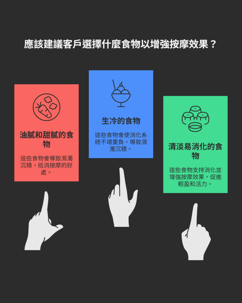 最後,作為您的治療師,我也想從身體結構的角度提醒您飲食的重要性。當您攝取過多油膩、甜膩或生冷的食物時,您的消化系統會不堪重負。這些難以處理的食物殘渣,會轉化為黏滯的「濕濁」,沉積在您的肌肉與關節之間,這正是我在按摩床上努力為您清除的東西。因此,選擇清淡、易於消化的食物,如蒸煮的蔬菜,不僅是為了您的腸胃,更是為了減輕您筋骨的負擔,讓按摩的疏通效果可以更持久,從而真正地由內而外打造一個輕盈、充滿活力的夏日體魄。