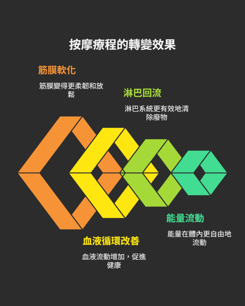 每一次的按摩療程,都不只是一次肌肉的放鬆,而是一次深層的體內「疏通工程」。當我運用溫熱的掌根或指節在您的背部、腿部進行深層推撫時,我能感受到緊繃的筋膜逐漸軟化,這有助於「融化」那些由寒濕凝結而成的阻滯點。西方的生理學也證實了這一點,有效的按摩能顯著提升局部血流量與淋巴回流,這與中醫理論中「活血化瘀」、「行氣利水」的目標不謀而合。因此,當您在療程後感到身體變輕、思緒變得清晰,這正是因為我們一起努力,將那些造成沉重感的「濕濁」推出了體外,讓清新的能量得以重新流動。