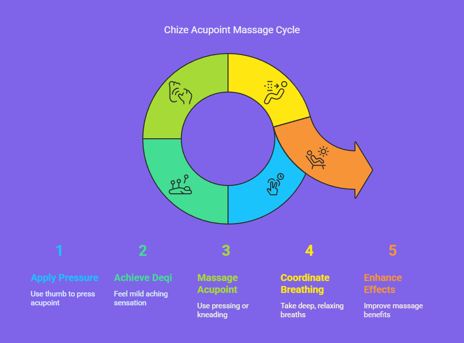 In the treasure trove of Traditional Chinese Medicine (TCM) wisdom, meridians and acupoints are the hubs for the circulation of Qi and Blood in the human body. The Chize acupoint (LU5), an important point on the Hand Taiyin Lung Meridian, has a name full of poetic meaning: 'Chi' (尺) refers to our forearm, and 'Ze' (澤) is like a pool or marsh where water currents converge. This implies that when the Meridian Qi of the Lung Meridian flows to this point, it converges like hundreds of rivers flowing into the sea, brimming with abundant energy.In our view as Massage Therapists, such acupoints are often key nodes for regulating bodily functions. The Chize acupoint is located on the elbow crease; when you slightly bend your elbow, you can find it on the thumb side of your arm, in the depression lateral to the biceps brachii tendon. When pressed, you will typically feel a unique aching and distending sensation, which is precisely the signal that the acupoint has been effectively stimulated.