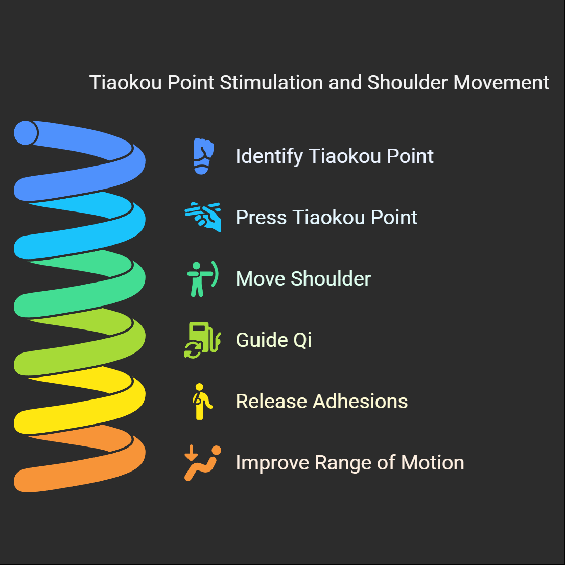 If you want to take the results to the next level, I strongly recommend adopting a professional technique: while you are pressing the Tiaokou point, simultaneously begin to actively and slowly move your afflicted shoulder. In TCM, this is a process known as "guiding the Qi to the site of the ailment."Within a range that is either painless or only mildly uncomfortable, you can try gentle movements such as forward arm raises, lateral raises, or drawing circles. When the acupoint on your leg is stimulated at the same time you are moving your shoulder joint, it's like pointing the way for the free-flowing energy. This helps to guide the Qi and blood more precisely to the shoulder, which can release adhesions and expand your range of motion.This combination of "remote massage with local movement" is a highly effective technique used by many professional therapists in a clinical setting.