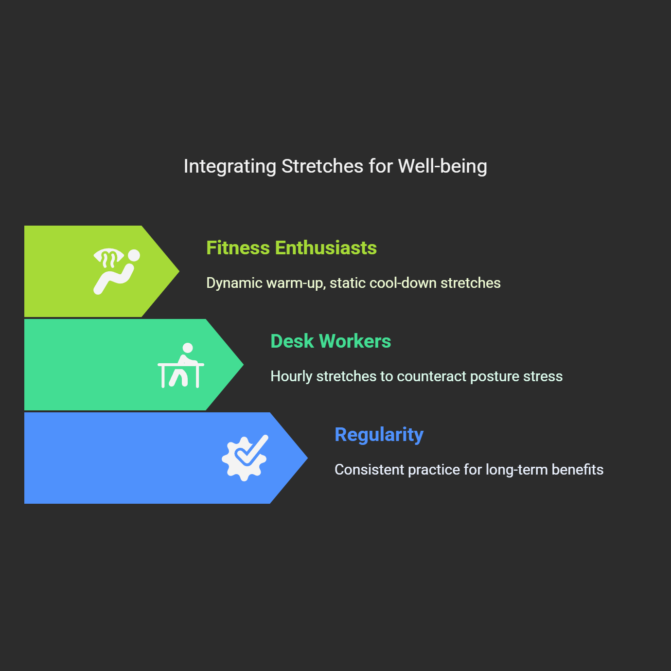 So, how can you integrate these stretches into your "Happy, Healthy Life"?If you are a professional who sits at a desk for long hours, I recommend standing up once every hour to perform a set of the seated overhead stretch and the cross-body arm stretch. This can effectively counteract the stress accumulated from poor posture.If you are a fitness enthusiast or an athlete, please incorporate dynamic triceps stretches (like arm circles) into your warm-up session. Then, in your cool-down routine after training, dedicate more time to static stretching—especially the overhead and leaning stretches—to promote recovery and enhance athletic performance.Regularity is key; only through persistence will you see long-term results.
