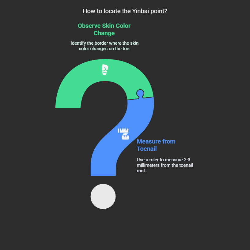 So, where exactly is this magical Yinbai point? Please take off your shoes and socks and look at your big toe. The Yinbai point is located on the inner (medial) side of the big toe, approximately 2-3 millimeters from the corner of the toenail root.An easier way to find it is to observe the junction where the skin color changes on your toe—the "border of the red and white flesh" where the skin of the top of the foot meets the skin of the sole. The Yinbai point lies on this line.Its name, "Yinbai," is itself full of poetic meaning: "Yin" represents something hidden or concealed, while "Bai" (white) is associated with Qi in Traditional Chinese Medicine. This name vividly depicts how the meridian Qi of the Spleen channel flows out from the depths of the body like a secret spring, marking the beginning of the entire meridian.